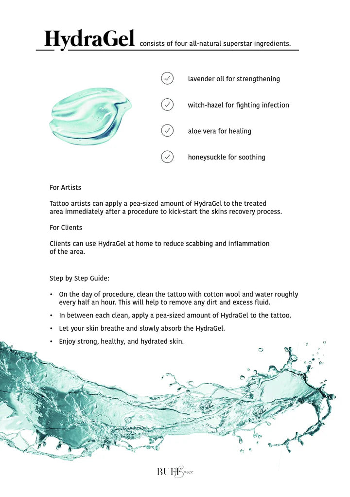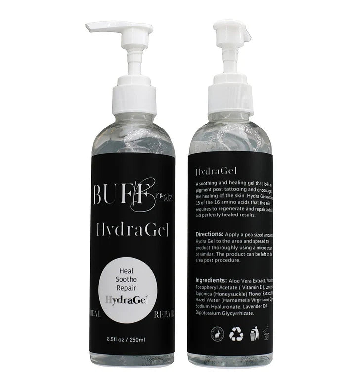 HydraGel is a super lightweight, aloe-vera based jelly that helps to repair and hydrate the skin after tattooing.